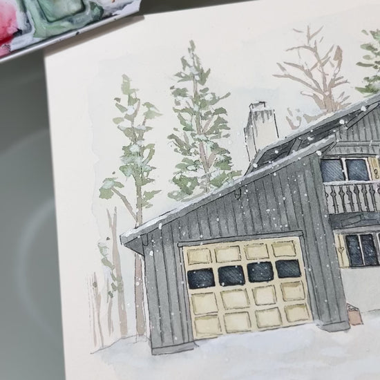 Home Portrait Custom Watercolor Painting, House-Warming Gift